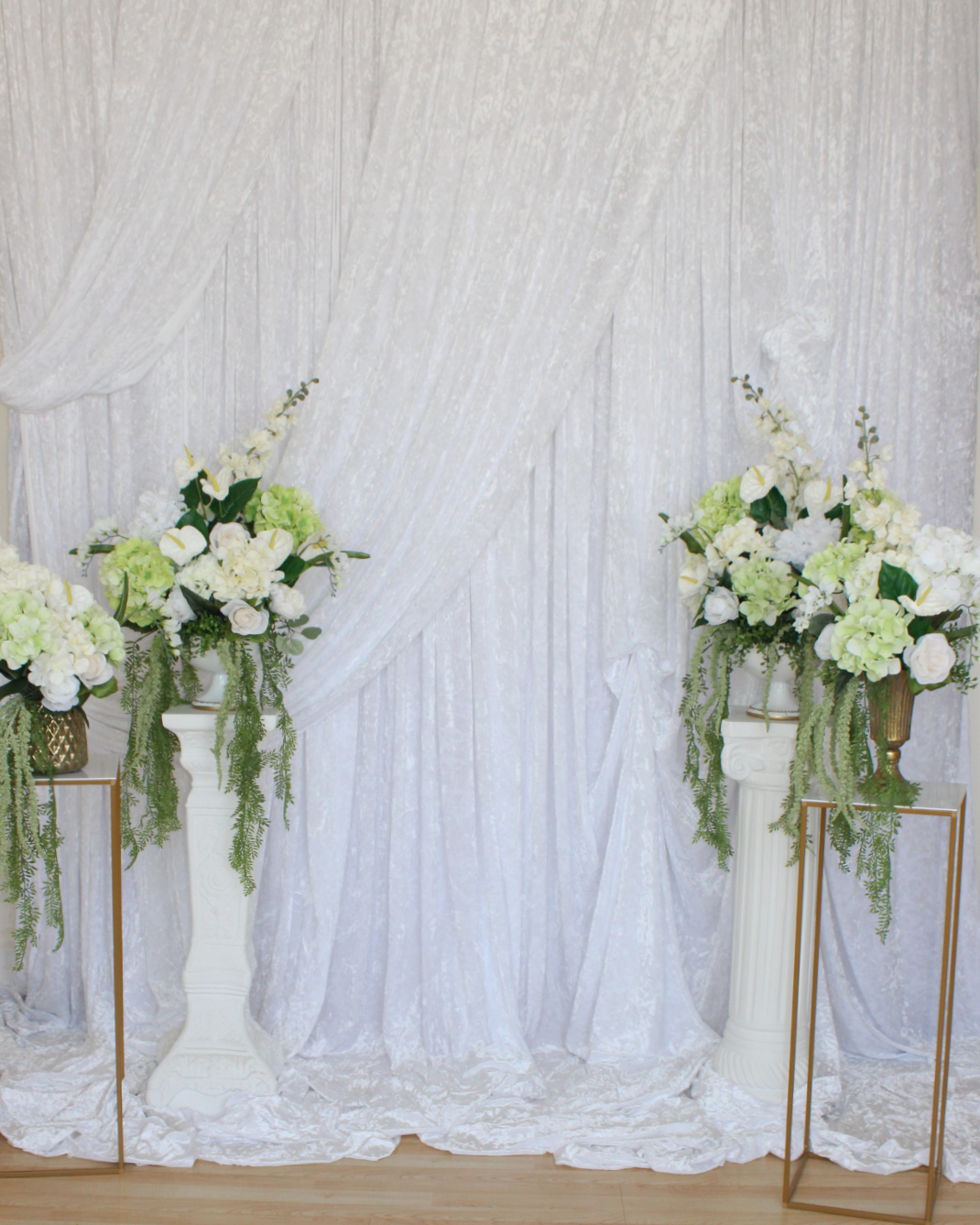 Styled Draping- Backdrop Rentals with Hand-Crafted Silk Floral Arrangements- Customizable Themes